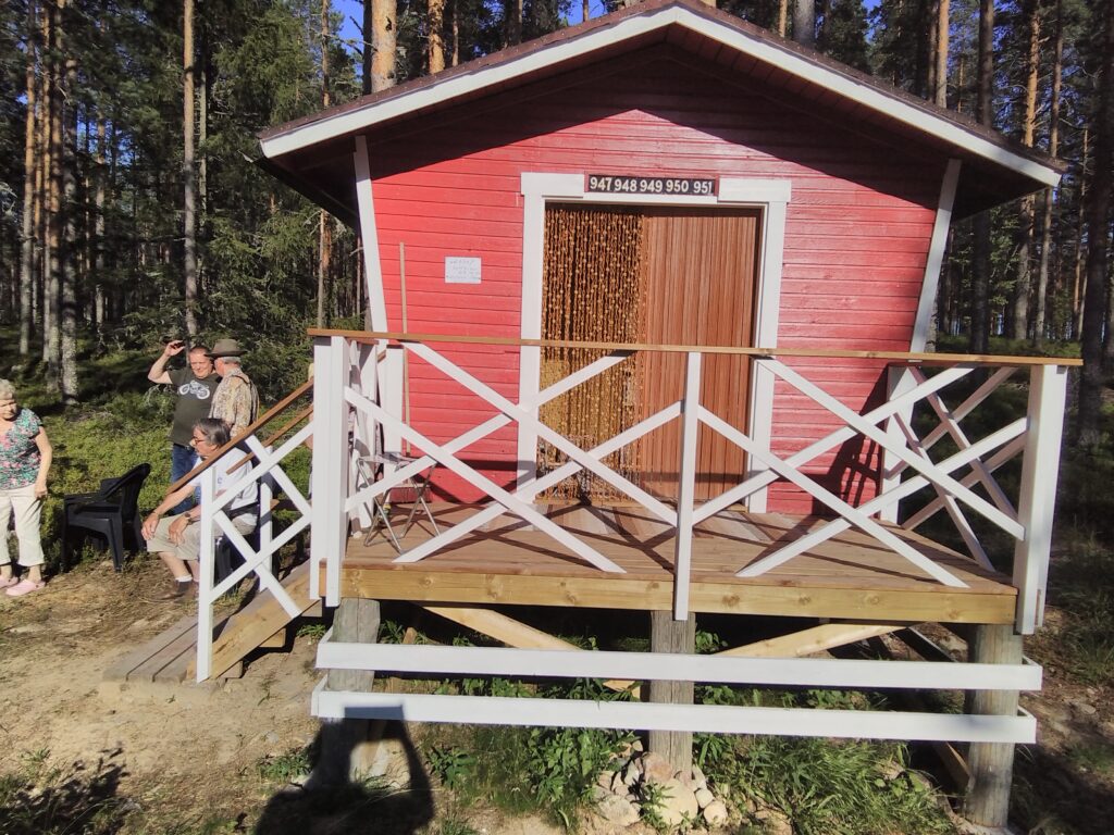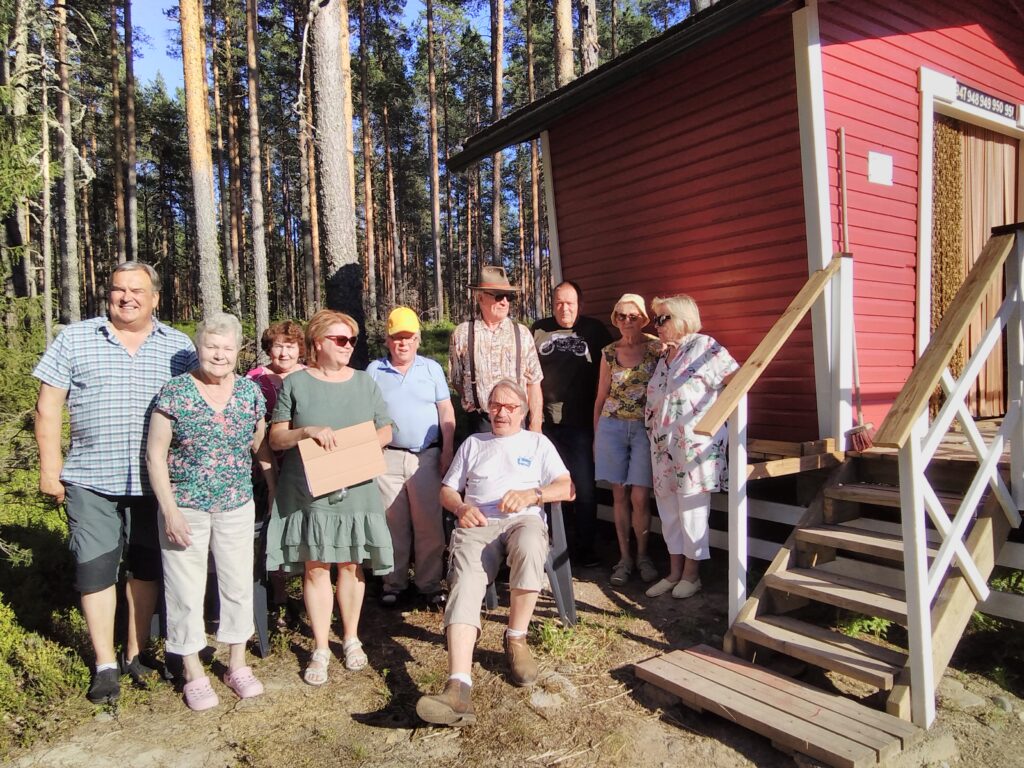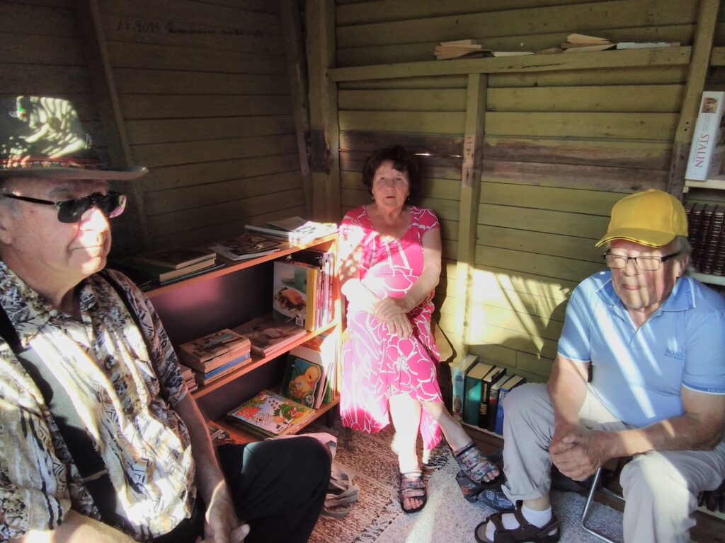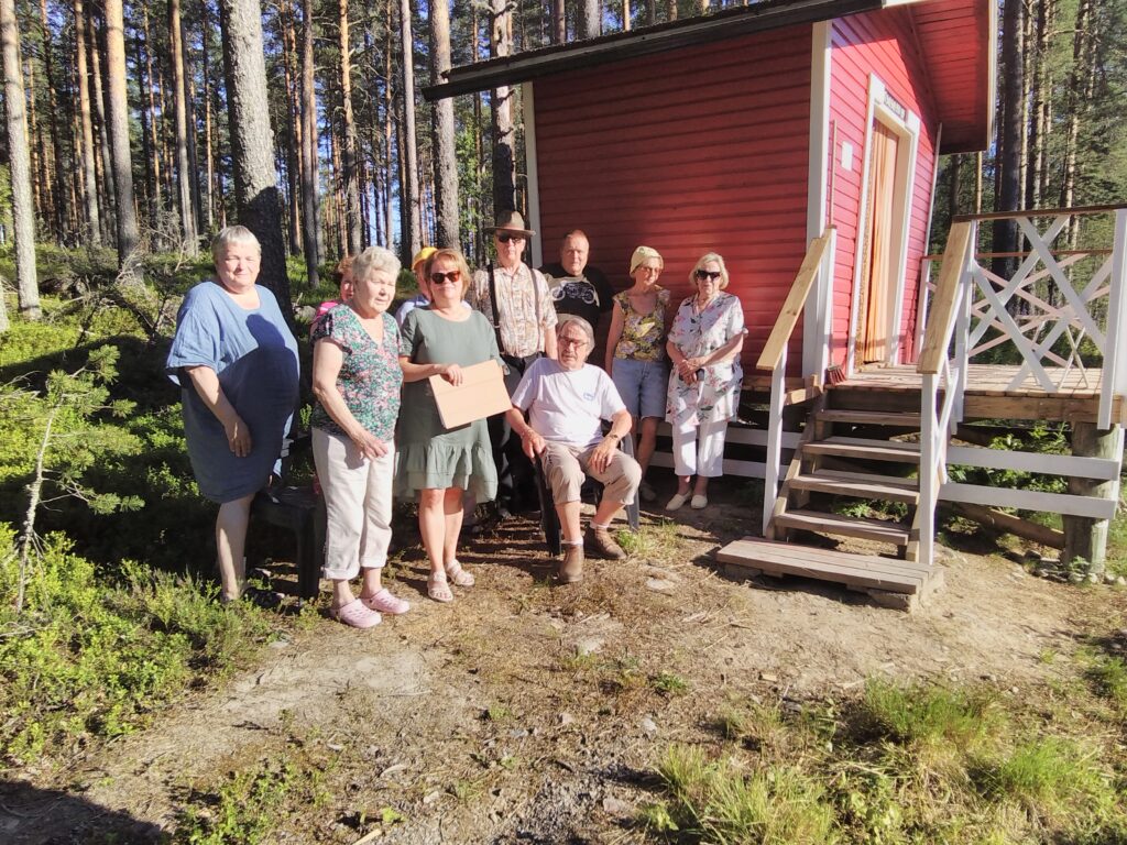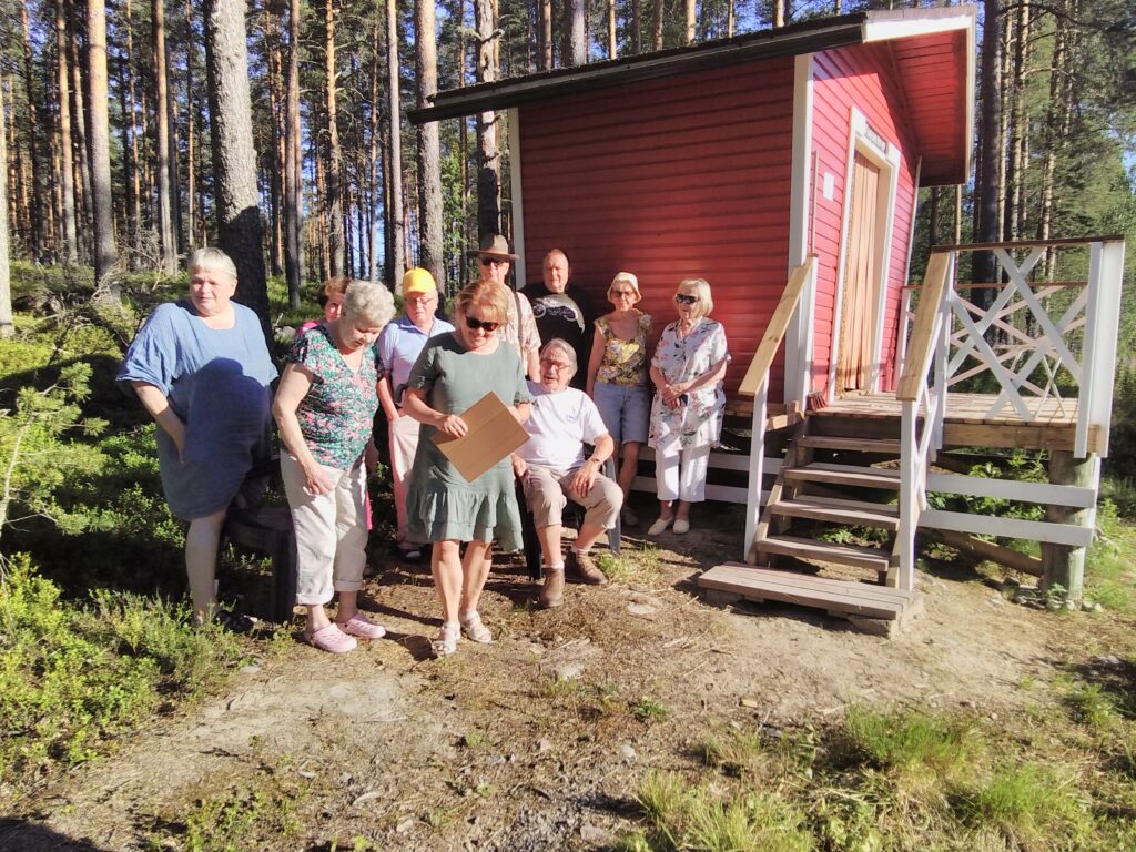 Eilen kokoonnuttiin kylän maitopukille avajaisiin. Kyläyhdistyksen puheenjohtaja Raimo Leväniemi on tehnyt suuren työn remontoidessaan maitopukin uuteen uskoon ja rakentaessaan uudet portaat kaiteineen. Jorma ojensi rakennusmestarille hirvenlihaa evääksi ja kiitokseksi. Sisälle rakennukseen on saatu kirjoja lahjoituksina ja kalusteet myös. Siinä kelpaa nyt käydä lukemassa tuokion tai hakemassa luettavaa kotiinkin. Tulossa on vielä lähiaikoina kesäkahvilakin. Kiitokset Raimolle ja tervetuloa käymään kylän keskelle!