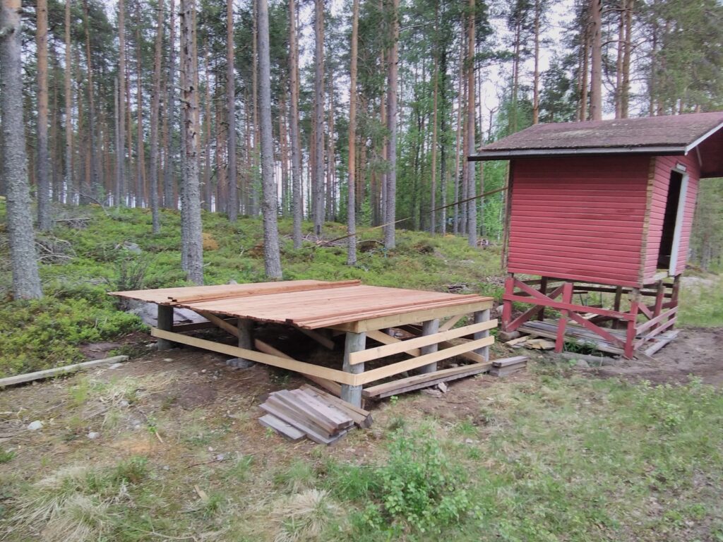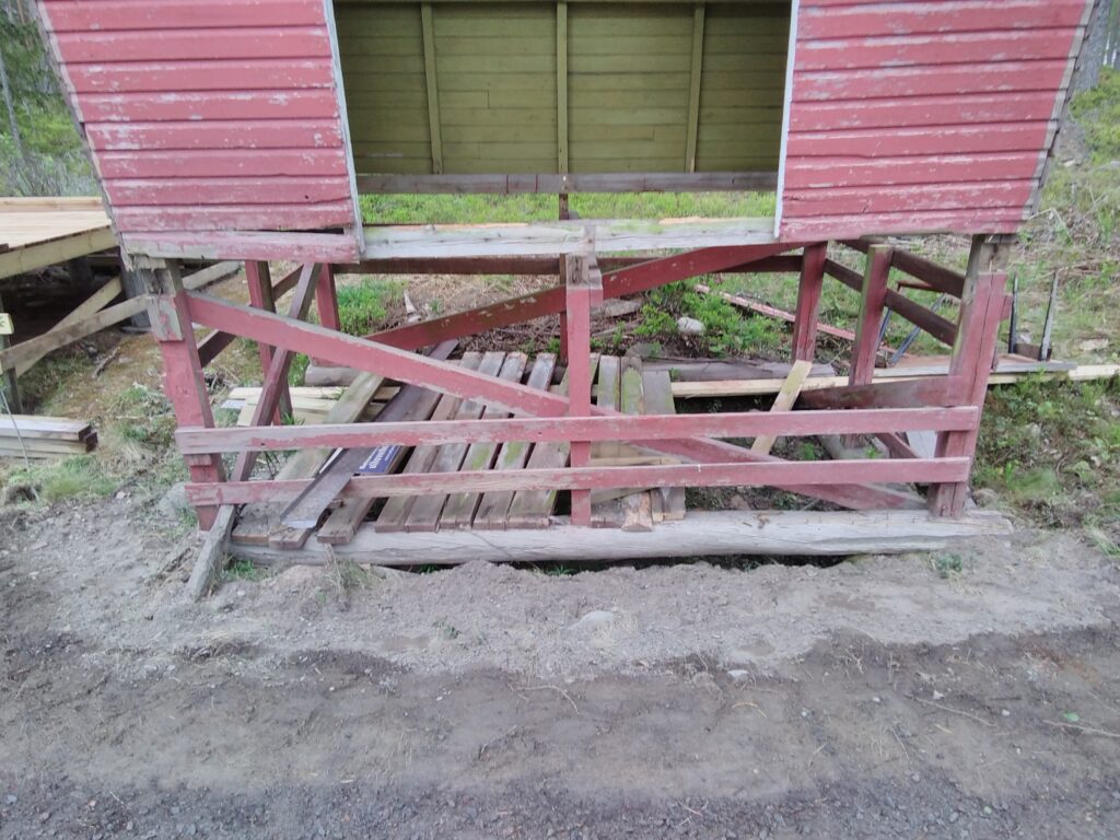 Vanha maitopukin pohja purettu pois siirtoa varten. Uusi pohja rakennettu viereen.